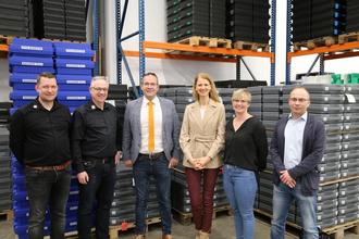 (v.l.n.r.) Produktionsleiter im Werk 1 Marcel Winter, Bertram Göb (Geschäftsführer), Landtagsabgeordneter Martin Henkel, Bürgermeisterin Manuela Henkel, Personalleiterin Kristin Gottbehüt und Produktionsleiter des Werks 2 Henry Harneit