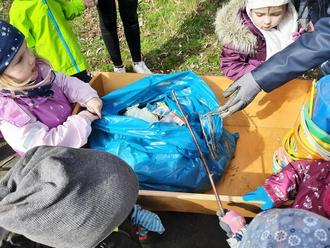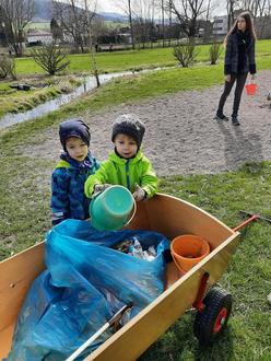 Ausgestattet mit Arbeitshandschuhen, Greifzangen sowie kleinen Eimern, Müllsäcken und einem Bollerwagen zogen die Kinder in die Ulster Aue, um achtlos weggeworfene Dinge aufzusammeln. Voller Eifer strömten die Kids aus und wurden sehr schnell fündig. Innerhalb 90 Minuten intensiven Sammelns füllten sie einen blauen Müllsack. Die Kinder waren sehr fleißig und mit vollem Einsatz bei der Sache. Die Kinder meinten, dass wir heute gar nicht alles schaffen und noch einmal losgehen müssen. Von Eisverpackungen über Zigarettenstummel, Bonbonpapier, Plastiktüten und Pizzabehältern bis hin zu Resten von Silvesterknallern, war alles dabei. Besonders vorsichtig waren die Erzieherinnen und Praktikantinnen bei den vielen zerschlagenen Bier-, Wein- und Schnapsflaschen - selbst auf dem Spielplatz in der Ulster Aue. „Das ist eine große Gefahr für Mensch und Tier, ebenso für Fahrzeuge“, meinten die Kids.