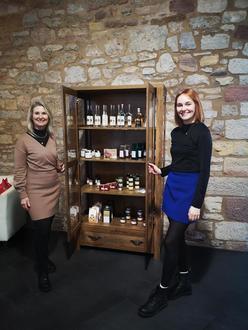 (v.l.n.r.) Ilona Rassbach und Luisa Herrlich präsentieren den neuen Rhöner Produkteschrank im Schlosshotel Geisa