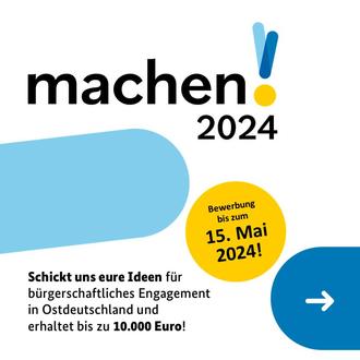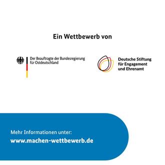 Der Wettbewerb des Beauftragten der Bundesregierung für Ostdeutschland wird 2024 zum fünften Mal umgesetzt. In den Vorjahren wurden bereits 467 Projekte gewürdigt. Seit 2023 wird „machen!“ in Kooperation mit der Deutschen Stiftung für Engagement und Ehrenamt umgesetzt. Die Deutsche Stiftung für Engagement und Ehrenamt hat im Juli 2020 ihre Arbeit in Neustrelitz aufgenommen. Mit der Stiftung gibt es erstmals eine bundesweite Anlaufstelle zur Förderung ehrenamtlichen Engagements. Sie berät, qualifiziert, fördert und vernetzt Engagierte und Ehrenamtliche und unterstützt diese insbesondere in ländlichen und strukturschwachen Räumen.