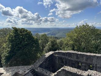 Die Führung auf der Burgruine Hauneck bietet atemberaubende Fernblicke bei Sonnenuntergang