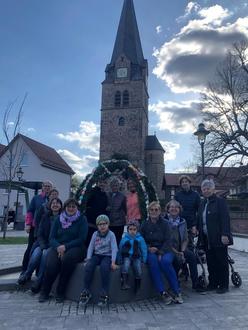 Die Unterstützer des Osterbrunnenprojektes in Motzlar auf dem Dorfplatz vor der Kirche