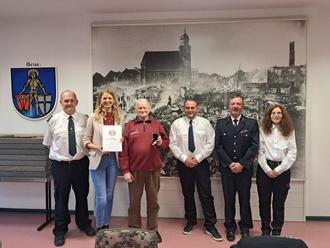 Der Höhepunkt der diesjährigen Jahreshauptversammlung war die Ehrung des Feuerwehrkameraden Elmar Hohmann. Er erhielt das Großes Brandschutzehrenzeichen am Bande Stufe I - für 60 Jahre Mitgliedschaft der Freiwilligen Feuerwehr Geisa. Manuela Henkel erklärte, dass sie diese Ehrung bisher nur ganz selten vorgenommen habe und es daher für sie um so besonderer sei, als eine der Ersten gratulieren zu dürfen.
