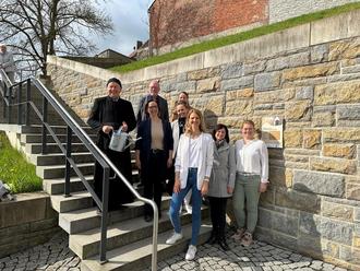 Geisa. Am 22. April wurden in Geisa vier Kneipp-Venentreppen eingeweiht: Die "Großer-Geisrain-Kneipp-Venentreppe", die "Linusrain-Kneipp-Venentreppe", die "Pforten-Kneipp-Venentreppe" und die "Funkengarten-Kneipp-Venentreppe". Damit ist die Stadt die erste in Thüringen und deutschlandweit wahrscheinlich die Einzige, die gleich vier solcher Treppenanlagen vorweisen kann. Bei der Einweihung begrüßte Bürgermeisterin Manuela Henkel Vertreter der Kneippverbände aus Hessen und Thüringen und besonders Peter Wolff als Mitglied des Kneipp-Landesvorstandes Hessen, der im Pfarrkostüm als Sebastian Kneipp selbstpersönlich gekommen war. Weiter hieß die Bürgermeisterin neben Vertretern der Rhön GmbH und dem Tourismusbüro des Wartburgkreises, auch Ulrike Schade, Geschäftsführerin der Verwaltungsstelle des Biosphärenreservates Thüringische Rhön, willkommen. Über das Regionalbudget des Biosphärenreservates wurden nicht nur die Kneipp-Venentreppen mit 90 Prozent gefördert, sondern gleich ein ganzes Kneipp-Konzept für die Rhönstadt. „Das von Pfarrer Sebastian Kneipp vor etwa 200 Jahren entwickelte Gesundheitskonzept basiert auf fünf Säulen“, so berichtete die Bürgermeisterin. Diese umfassen Wasseranwendungen, Bewegung, Ernährung, die Heilpflanzenkunde und die sogenannte Ordnungstherapie, als eine Lebensführung in Balance und Ausgleich. Die Wasseranwendungen sind in Geisa bereits durch das vorhandene Tretbecken an der Ulsteraue vorhanden. Für die gesundheitsvorsorgende Bewegung sollen nun die vier Kneipp-Venentreppen sorgen. In einem zweiten Schritt entsteht in diesem Jahr noch auf der Schlossterrasse ein Heilkräutergarten mit Sinnespfad. Ebenso soll dort eine Thymian-Duftrasenbank aufgestellt werden. „Geisa und die Rhön sind wunderbare Orte, in denen das ganzheitliche Gesundheitskonzept von Sebastian Kneipp gut integriert werden kann“, so Henkel. „Wir sind zwar kein Heilbad, haben aber dafür eine herrliche Natur mit einer einmaligen Artenvielfalt vorzuweisen“, betonte die Bürgermeisterin. Und da Geisa auf einem Bergsporn liege und zahlreiche Treppenanlagen habe, hätte man dann einfach aus der Not eine Tugend gemacht und den gesundheitlichen Aspekt des Treppensteigens in den Fokus genommen. Die Stadt möchte letztlich mit dem neuen Kneippkonzept nicht nur die Gesundheit von Bürgern und Gästen fördern, sondern vor allen Dingen auch das Bewusstsein für natürliche Heilmethoden und Ganzheitlichkeit stärken und die Lebensqualität vor Ort verbessern. „Bei Kosten mit 10.450 EURO und einem Eigenanteil von 1.450 EURO schaffen wir einen deutlichen Mehrwert für unsere Bürger und Gäste“, ist sich Manuela Henkel sicher. Ulrike Schade freute sich über das kreative Projekt. „Wir sind sehr froh, dass das Thüringer Umweltministerium solche Maßnahmen im thüringischen Teil des Biosphärenreservates Rhön fördert“, so Schade.