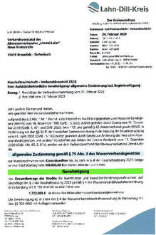 Aufgrund des § 2 Abs. 1 Nr. 1 Buchst. a des Hessischen Ausführungsgesetzes zum Wasserverbandsgesetz (HWVG) vom 16. November 1995 (GVBl. Nr.22/1995, I S. 503ff), zuletzt geändert durch Gesetz vom 11.12.2019 (GVBl. Nr.28/2019, S.421ff) und in Verbindung mit § 94 ff. der Hessischen Gemeindeordnung sinngemäß hat die Verbandsversammlung des Abwasserverbands Ulmtal Lahn am 14.02.2023 folgende Festsetzung des Haushaltsplans beschlossen