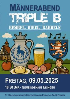 | 18.30 Uhr | Triple B Männerabend im ev. Gemeindehaus Edingen: „Bembel, Bibel Babbeln“ lautet diesmal das Motto. Es wird hessisch! Erbarmen … zu spät! |