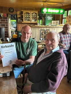 Christof Würz überreicht Willi Biemer die Urkunde für 60ig-jährige Mitgliedschaft