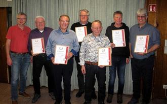 v.l.n.r.: Der 2.Vorsitzende Martin Krauß, Karl-Heinz Dampf, Manfred Dross, Lothar Sänger, Michael Nagler und der Vorsitzende Siegfried Pilawa