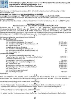 Nächster Artikel: Bekanntmachung des Wasserbeschaffungsverbandes Wasserwerke Dillkreis Süd, Sinn, über die Feststellung des Jahresabschlusses für das Wirtschaftsjahr 2024