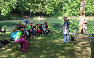 Harald Heuser informierte die Kinder über den Angelverein, die Angelgewässer, die staatliche Fischerprüfung und den damit verbundenen Naturschutz.