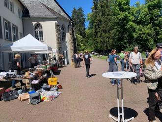Rund 35 Personen aus Greifenstein und Umgebung boten ein vielfältiges Angebot an Ständen an: Von Puppen, Spielsachen, Kleidung, Haushaltswaren, Honig, Holundersirup bis hin zu selbstgebauten Instrumenten war alles dabei. Großer Andrang herrschte beim Verkauf der Gegenstände aus dem Klinikgebäude. Besonders begehrt waren die Schilder: Ehemalige Mitarbeitende nahmen Schilder mit der Nummer ihrer damaligen Station mit - als Andenken an Klinikzeiten. Einige kamen auf Wortspiel-Ideen und nahmen beispielsweise Schilder mit „Schlaflabor“ für das eigene Schlafzimmer mit. Auch die zahlreichen Duschhocker, Möbel, Bilder oder auch Gegenstände aus dem Kliniklabor fanden viele Abnehmer.