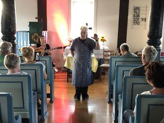 Ein schöner Kabarettabend war es, als die Künstlerinnen vom EKHN-Kirchenkabarett dem Ruf des Missionswerkes chrisTONart nach Rodenroth folgten. Der Kabarettabend sollte bereits am 24.04.2020 stattfinden, aber damals begann ein anderes Kabarett um ein Virus, das sich längst als harmlos entpuppte, im Gegensatz zu den Maßnahmen. Nun endlich konnten die beiden Künstlerinnen Ute Niedermeyer und Antonia Jacob die beschauliche Anzahl interessierter Gäste offenbar überzeugen und haben sie einfach mitgenommen mit ihrem Programm. Ganz offensichtlich haben sich alle Anwesenden amüsiert und die satirischen Pointen des Künstler-Duetts genossen. Und nicht nur das: Sie folgten auch den Anleitungen der Akteurinnen zu körperlicher Ertüchtigung – mit Augenzwinkern.