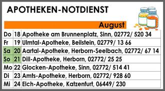 Unsere Gemeinde gehört zum Apotheken-Notdienstkreis 21. Den Notdienst der entsprechenden Apotheken haben wir hier wöchentlich für Sie aufgelistet. Apotheken aus anderen - an unsere Gemeinde angrenzenden - Notdienstkreisen, die möglicherweise aber näher an Ihrem Ortsteil liegen, können Sie sich auf www.apotheke.de anzeigen lassen. Sie haben außerdem die Möglichkeit, sich beim Apothekenfinder unter der Telefonnummer 0800 / 00 22 833 die notdiensthabenden Apotheken in der Nähe ansagen zu lassen.