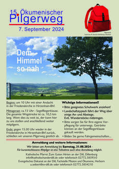 | 10:00 Uhr | Ökum. Pilgerweg, Treffpunkt ist die Friedenskirche in Hirzenhain-Bahnhof |