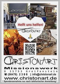 | - | Geldspenden: christonart, BIC: VBMHDE5F, IBAN: DE 28 5139 0000 0065 7125 12 |