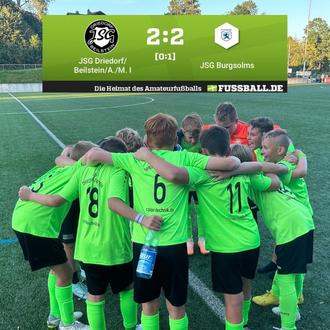 Nachdem sie zunächst den Gegentreffer zum 0:2 hinnehmen musste, gelang es durch einen Doppelschlag von Mika S. in der 51. und 53. Spielminute, das Spiel zu drehen. Fleißige und konsequente Defensivarbeit und mehr Mut im eigenen Offensivspiel wurden am Ende belohnt und der 2:2 Endstand war am Ende leistungsgerecht.
