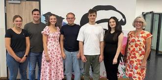 v.l.n.r.: Rieke Krause, Lukas Ströhmann, Liana Spät, Maik Schneider, Jannis Liebig, Gamze Kutlu und Schulleiterin Annegret Schilling