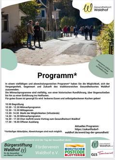 In einem vielfältigen und abwechslungsreichen Programm für die ganze Familie, haben Sie die Möglichkeit mehr über die Gesundheitsangebote vom Waldhof und aus der Region zu erfahren. Es wird ebenfalls einen Vortrag zur zukünftigen Gestaltung von Gesundheitsangeboten am Waldhof mit Gelegenheit zu Fragen und Gespräch geben.