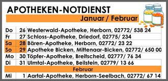 Unsere Gemeinde gehört zum Apotheken-Notdienstkreis 21. Den Notdienst der entsprechenden Apotheken haben wir hierwöchentlich für Sie aufgelistet. Apotheken aus anderen – an unsere Gemeinde angrenzenden – Notdienstkreisen, die möglicherweise aber näher an Ihrem Ortsteil liegen, können Sie sich auf www.apotheken.de anzeigen lassen.