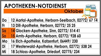 an Wochenenden, Feiertagen sowie an Werktagen von 18.00 bis 07.00 Uhr für alle Ortsteile der Gemeinde Greifenstein.