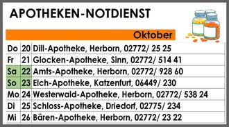 Unsere Gemeinde gehört zum Apotheken-Notdienstkreis 21. Den Notdienst der entsprechenden Apotheken haben wir hier wöchentlich für Sie aufgelistet. Apotheken aus anderen - an unsere Gemeinde angrenzenden - Notdienstkreisen, die möglicherweise aber näher an Ihrem Ortsteil liegen, können Sie sich auf www.apotheke.de anzeigen lassen. Sie haben außerdem die Möglichkeit, sich beim Apothekenfinder unter der Telefonnummer 0800 / 00 22 833 die notdiensthabenden Apotheken in der Nähe ansagen zu lassen.