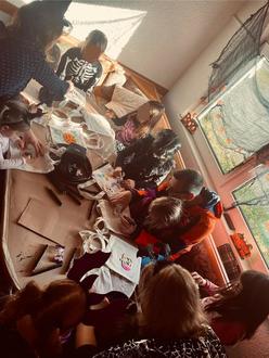 Ab 14 Uhr trafen sich dort Hexen, Geister, Vampire und Skelette, tobten wild durch das Vereinsheim und hatten viel Spaß bei der Kinderdisco, verschiedenen Spielen und in der Bastelecke bei der Gestaltung von Taschen für die Süßigkeiten, die demnächst auf der Tour durch die Ortschaften an den Haustüren eingesammelt werden.