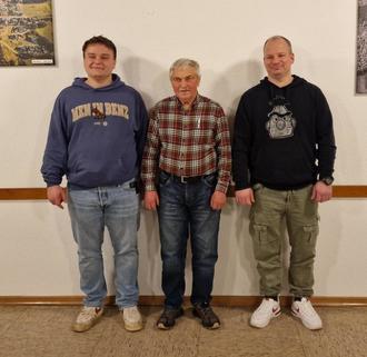 Der neue 1. Vorsitzende Leon Schäfer, Manfred Funk und Maurice Schäfer, der für 25jährige Mitgliedschaft geehrt wurde