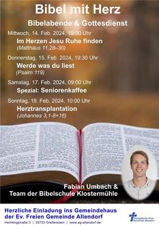 | 10.00 Uhr: | Gottesdienst mit Fabian Umbach und Team Klostermühle |