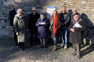 Zur Einweihung der sechs Tafeln kamen Vertreter und Vertreterinnen der beteiligten Kommunen und Vereinsmitglieder, der Region Lahn-Dill-Wetzlar sowie des Vereins Hugenotten- und Waldenserpfad e.V. am „Leierbrunnen“ in der historischen Altstadt von Braunfels zusammen. Die dortige Tafel informiert insbesondere über die breite Einbindung von Braunfels in den europäischen Kontext, als Europastadt und Mitglied der Europarat-Kulturroute Hugenotten- und Waldenserpfad.