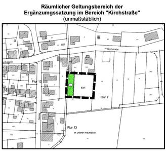 Der Geltungsbereich der Ergänzungssatzung geht aus der nachstehenden Karte hervor (gestrichelt umrandeter Bereich).