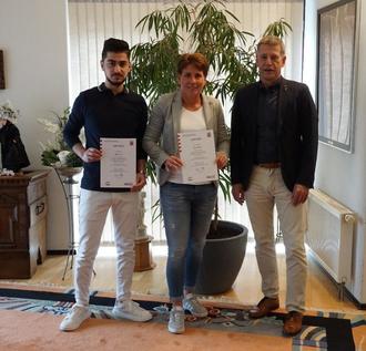 (von rechts) Herr Bürgermeister Peter Kremer, Frau Silvia Mucke, Herr M-Zohir Boushi