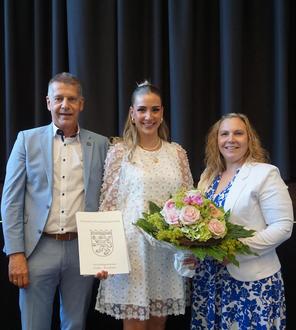 Bürgermeister Peter Kremer, Anna Weimar und Bianka Möller-Balzer (Fachbereichsleiterin Haupt-, Personal- und Finanzverwaltung)