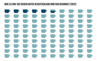 Die Infografik s.u. zeigt, dass nur 5,6 von 100 Tassen Kaffee aus Fairem Handel stammen.