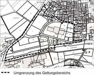| Der räumliche Geltungsbereich ist aus dem Plan der Anlage zu entnehmen, der Plan ist Bestandteil des Aufstellungsbeschlusses. |
