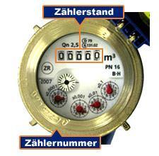 Bitte geben Sie nur die vollen Kubikmeter (SCHWARZE Zahlen) an. Die Nachkommastellen (rote Zahlen) werden nicht benötigt.