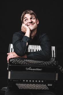 Søren Thies begleitet mit seinem Akkordeon den französischen Abend