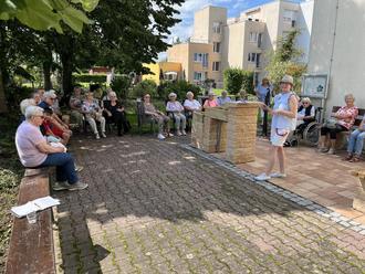 Bezogen auf das Leben im Sozialzentrum der AWO fasste sie zusammen: Gerade im Alter, wenn viele Veränderungen das Leben begleiten und schwer machen-Verlust der Gesundheit und Selbstständigkeit, Wohnung, Freunde und Familie-braucht der Mensch Kraftquellen. Die Natur kann eine große Hilfe sein, Rhythmus, das Werden und Vergehen zu sehen und anzunehmen. Darum ist es unsere Aufgabe, diese Natur zu schützen und für die nächste Generation den Lebensraum Erde zu erhalten.
