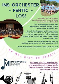 Der Musikverein Hadamar ist auf der Suche nach interessierten Kindern und Jugendlichen, die seit kurzem ein Instrument erlernen und gerne mal ausprobieren möchten, in einem Orchester zu spielen. Eigens dafür gründet der Musikverein ein Projektorchester, das sich vor und nach den Osterferien ein paarmal trifft, um 2-3 leichte Stücke gemeinsam zu proben. So können die Kinder erfahren, wie viel Spaß es macht, in einer Gruppe zu musizieren. Diese Proben haben natürlich auch ein Ziel: Das neue Orchester soll einen Auftritt auf dem Jubiläumskonzert der Jugendabteilung des Musikvereins am Muttertag haben und das neu Gelernte einem großen Publikum präsentieren.