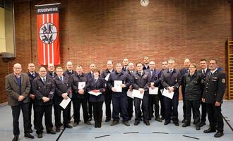 Den Abschluss der Veranstaltung bildeten Ehrungen und Beförderungen sowie die Verleihung von Ehrennadeln und -medaillen. Besondere Anerkennung wurde Feuerwehrangehörigen zuteil, die sich durch langjährige Dienstzeit oder besonderes Engagement ausgezeichnet haben.