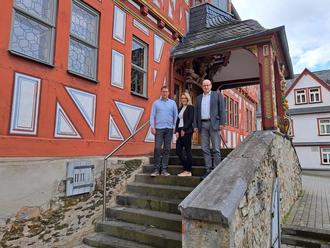 Gemeinsamer Austausch im Alten Rathaus zwischen Lars Wittmaack, dem Geschäftsführer der Wirtschaftsförderung Limburg-Weilburg-Diez GmbH, Bürgermeister Michael Ruoff und Nadine Hahn vom Stadtmarketing Hadamar.