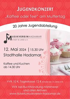 Am Muttertag, Sonntag, der 12. Mai, findet daher zum dritten Mal ein Konzert des Musikvereins Hadamar Stadt und Land statt, das komplett durch die große Jugendabteilung des Vereins gestaltet wird. Das Konzert steht unter dem Motto „Kaffee oder Tee“. Ab 14.30 Uhr öffnet die Stadthalle ihre Türen und ebenso das reich bestückte Kuchenbuffett. Um 15.30 Uhr beginnt das Konzert, in dem sich alle Ensembles der Jugendabteilung präsentieren: Neben dem Ausbildungsorchester und dem Jugendorchester werden auch die Blockflötengruppen und das neu gegründete Projektorchester einen eigenen Auftritt haben. Das Publikum darf auf weitere musikalische Leckerbissen und Überraschungen gespannt sein.