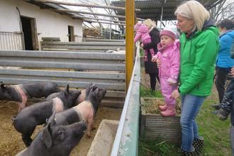 Dabei gilt es, die Kinder zu sensibilisieren, verantwortungsvoll mit unserer Umwelt umzugehen und ihre Ressourcen zu nutzen. Der Biobauer Eckard Egenolf in Faulbach baut Obst, Gemüse, Salat und Getreide an und hält seine Esel, Schweine und Kühe artgerecht in großen Stallungen. Im Sommer grast das Nutzvieh auf den nahegelegenen Wiesen. Seine saisonalen Produkte verkauft er erntefrisch in seinem Hofladen, ebenso Fleisch- und Wurstwaren und Milchprodukte.