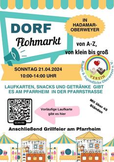 Der Kinder- und Jugendverein Oberweyer lädt alle Interessierten von nah und fern zum dritten Dorf-Flohmarkt am 21. April nach Oberweyer ein. Angeboten werden in diesem Jahr nicht nur Kindersachen. Ausschließlich Privatverkäufe aus dem eigenen Hof, keine Händler. Los geht es ab 10 Uhr – Laufkarten, Informationen, Snacks, Kaffee und Kuchen sowie Getränke gibt es am Pfarrheim Oberweyer gegenüber des Kindergartens. Ab 12 Uhr wird am Pfarrheim zudem Gegrilltes zum Verkauf angeboten. Es wird gebeten, die öffentlichen Parkplätze am Sportplatz sowie an der Kirche zu benutzen.