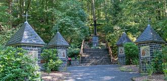 Wir treffen uns um 14.30 Uhr an der hinteren Borngasse in Steinbach und wandern gemeinsam durch den Wald zu der Wallfahrtsstätte 7-Schmerzen.