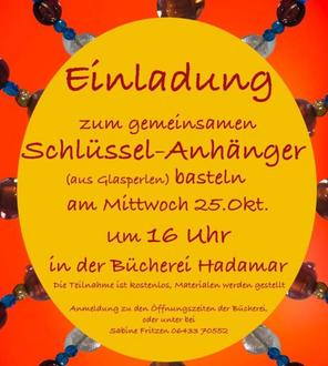 Treffpunkt für alle Kinder, die gerne basteln, ist Mittwoch, der 25.Oktober 2023 um 16 Uhr. Dann verwandelt sich die Katholisch Öffentliche Bücherei Hadamar– ökumenisch geführt – in eine Bastelwerkstatt. Jedes Kind kann sich hier kostenlos einen eigenen Schlüsselanhänger mit bunten Perlen gestalten. Das Team der Bücherei freut sich auf diesen lustigen Bastelnachmittag mit euch.