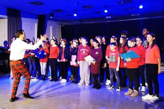 Ihnen folgte der Chor der Klassen 5-7 des Realschul- und Gymnasialzweigs, abermals unter der Leitung von Dimitrios Zamantzas. Der Chor brachte mit dem Klassiker „Stille Nacht“ die Stille des Advents zurück in die Aula, bis es schließlich weihnachtlich-rockig wurde mit den Titeln „Santa Claus Is Coming to Town“ und „Feliz Navidad“. Es war sehr beeindruckend, was hier alles zu Gehör gebracht wurde!