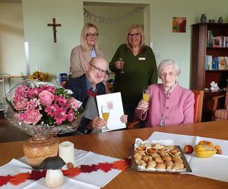 Am 30. Oktober 1923 erblickte Maria Witte geborene Binder in Langstrobnitz/ Südböhmen das Licht der Welt. Das war vor genau 100 Jahren. Deswegen erhielt sie Besuch vom Bürgermeister der für die Stadt Hadamar gratulierte. Frau Witte erfreut sich heute noch einer guten Gesundheit und trank zu ihrem Ehrentag sehr gerne ein Glas Sekt. Dabei erzählte sie aus ihrer schönen aber harten Jugend. Der Vater war bereits in ihrer Kindheit im Wald beim Holz schlagen tödlich verunglückt und als einzige Tochter musste sie sich stets um ihre Brüder kümmern damit die Mutter die Familie ernähren konnte. Nach der Vertreibung kam sie nach Wiesbaden und wohnte dort direkt am Schiersteiner Hafen. Die letzten Jahre fand sie eine neue Heimat im AWO Sozialzentrum.