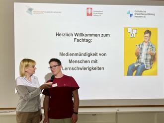 Anne Badmann, aus Hadamar, und Ruben Rhensius haben den Fachtag organisiert und moderiert. (© KEB Hessen)