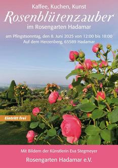 Am Sonntag, 8. Juni 2025, von 12 bis 18 Uhr ist das Rosencafé im Rosengarten auf dem Herzenberg geöffnet mit leckeren Kuchen und Torten im Angebot. Gleichzeitig findet eine Kunstausstellung von Eva Stegmeyer im Rosengarten statt. Sie hat Malerei als Hobby und arbeitet in verschiedenen Mal- und Grafiktechniken. Die gezeigten Bilder sollen die Bandbreite ihres Arbeitens darstellen.