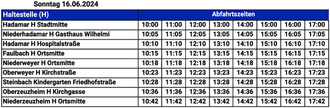 | Hadamar H Stadtmitte | 10:00 | 11:00 | 12:00 | 13:00 | 14:00 | 15:00 | 16:00 | 17:00 |